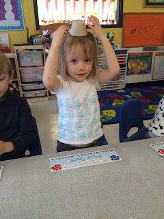 This week we are discussing Fitness. Today we discussed catching and throwing. We provided ideas of items you can throw and created a chart. For our main activity each child had a pom pom ball and a cup. The children were encouraged to first toss the pom pom in the air and catch it with their hands. Once they felt more comfortable, they were encouraged to throw the pom pom and catch it in the cup. Once they worked on this skill, they were given a Popsicle stick. The Lions then were asked to balance the pom pom on their stick. They just loved this activity!